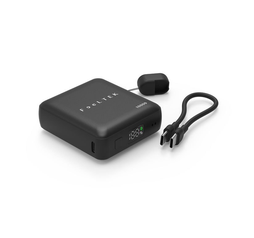 Convenient charging of a built-in USB-C port & 17cm cable with protective cap.